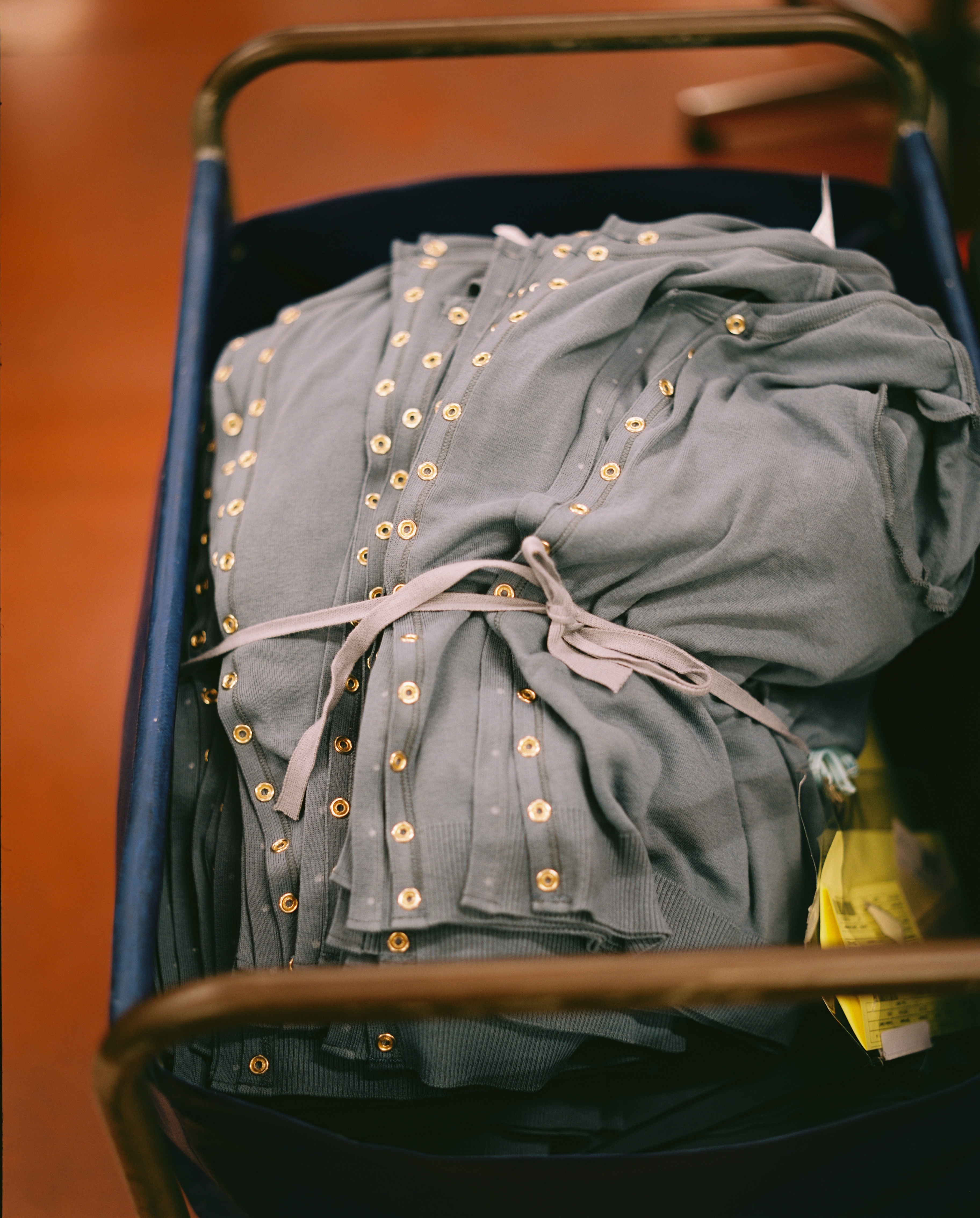 En 1979, c’est la déferlante : Agnès b. invente le cardigan pression. «J’avais les cheveux très longs, très bouclés, et passer un sweat-shirt par la tête, ça m’énervait. Alors je me suis dit : “Je vais faire un modèle qui s’ouvre devant.” Les pressions, j’y ai pensé tout de suite.» C’est ainsi qu’est né le fameux «tchak!», le bruit métallique des treize pressions de nacre lorsqu’on les dégrafe d’un coup sec.