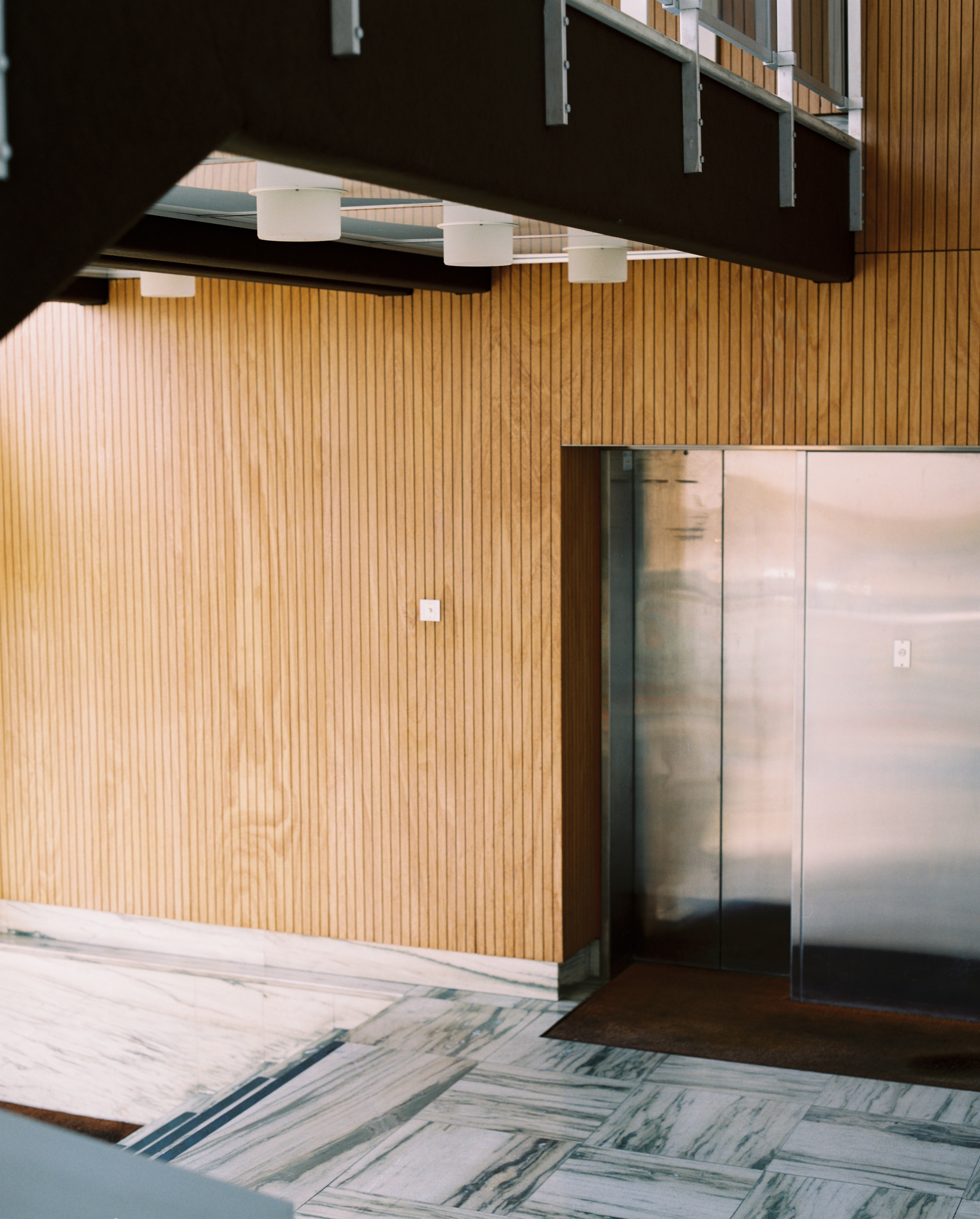 “ “ A chaque fois que je rentre ici, j’ai l’impression que je vais croiser Mylène Demongeot ou Jean-Paul Belmondo.” Frédéric Lefebvre ne travaille pas sur un plateau de cinéma, il est responsable de production chez Degrenne, entreprise normande d’arts de la table fondée en 1948. Escalier en marbre jauni, cactus et autres plantes tropicales dans des bacs Riviera, moquette beige élimée, banque d’accueil en simili cuir marron, fauteuils vintage en cuir blond et Plexiglas fumé signés Boris Tabacoff... Depuis la création du siège, la décoration est restée inchangée...”