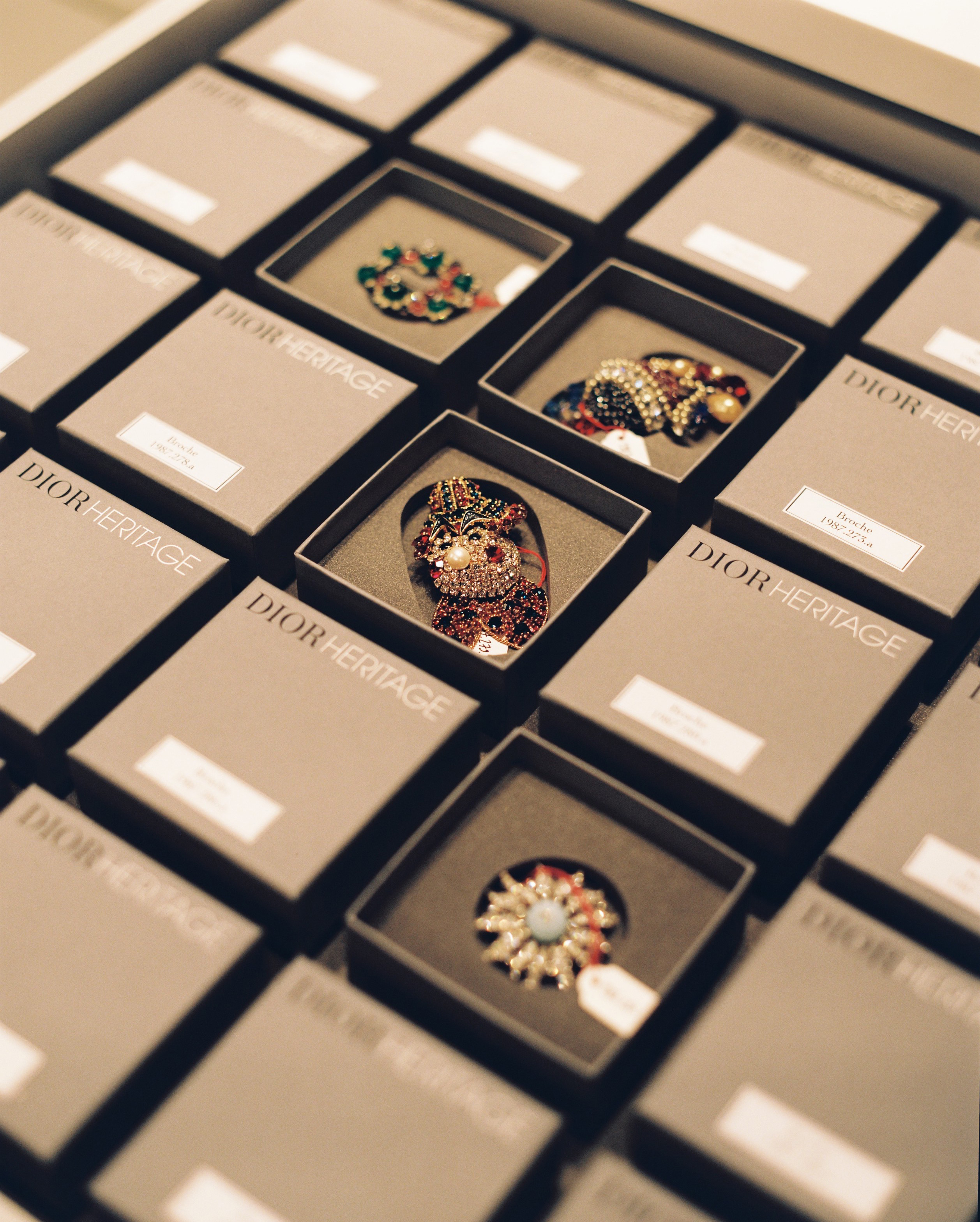 de la volonté et des moyens pour racheter en salle des ventes son propre patrimoine... Dans la salle des accessoires, ce sont sept cents boîtes grises qui protègent les souliers, chapeaux et bijoux, période « Monsieur Dior »...”