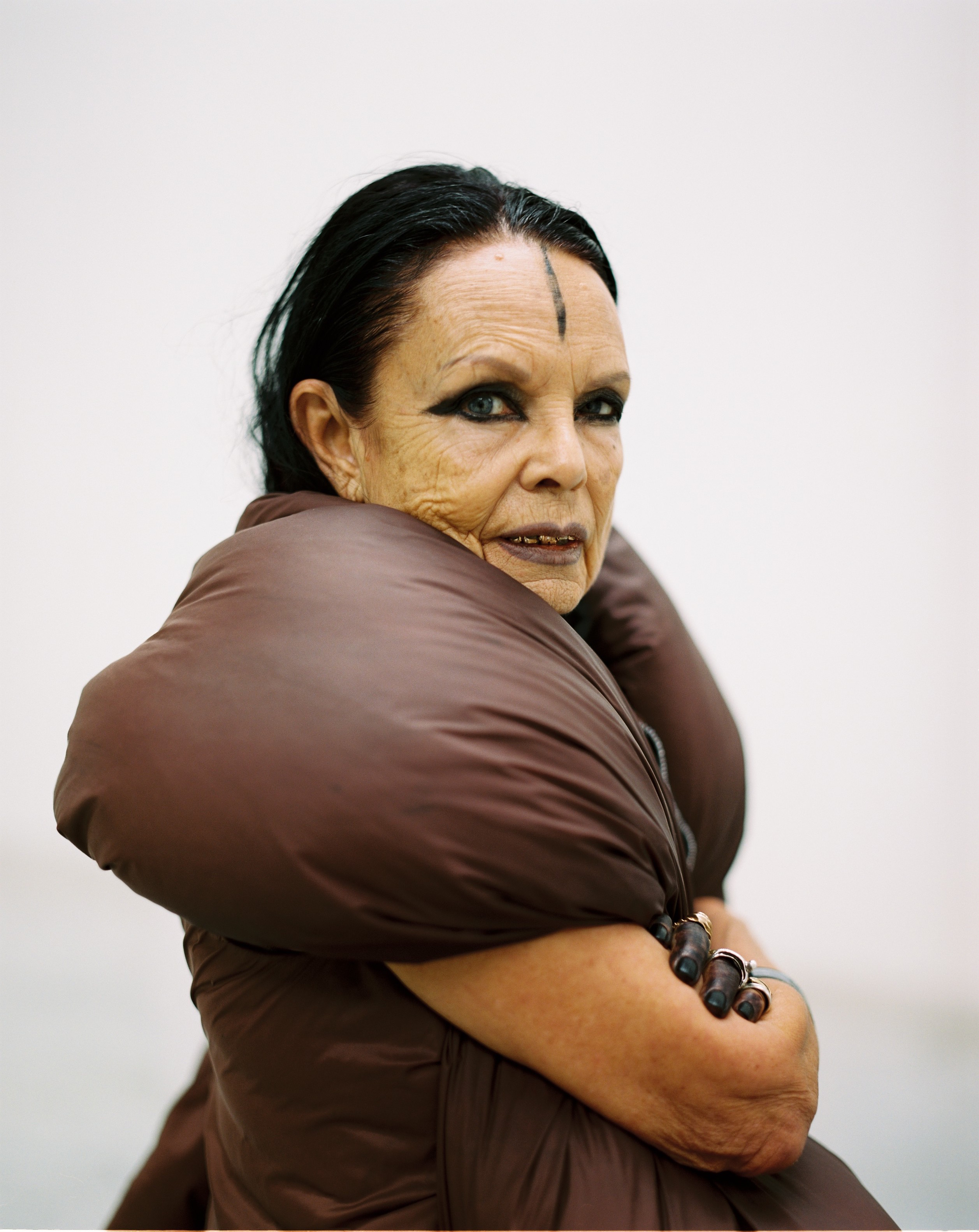 “ Ce samedi après-midi de février, dans le corner shop de Selfridges, les clients du grand magasin londonien jettent des regards hallucinés sur une petite créature étrange. Michèle Lamy, épouse du styliste américain Rick Owens, arbore un visage gravé de rides et de maquillage noir. Son pull kaki élimé, dont elle n’a enfilé que les manches, lui tombe négligemment entre les jambes. Son corps est couvert de chaînes, de bagues et de gros bracelets en pagaille qui « musicalisent » sa silhouette. Elle porte, en bandoulière, un immense cabas en cuir d’autruche telle une nomade du désert qui transporterait toute sa vie avec elle. Michèle Lamy n’a pas un look, mais une dégaine et toujours l’impression, où qu’elle se trouve, « d’être sur scène »...”